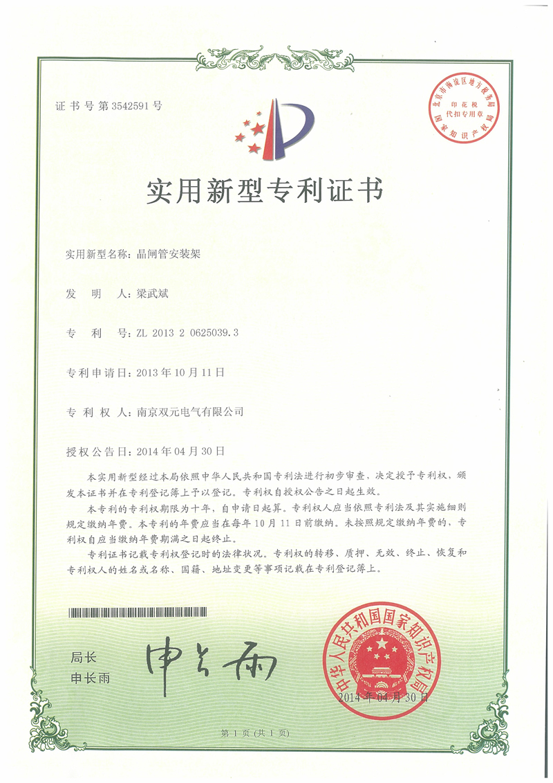 Patent certificate of utility model