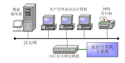 管理計算機子系統(tǒng)由數(shù)據(jù)服務(wù)器、生產(chǎn)管理及辦公計算機、網(wǎng)絡(luò)交換機、打印機等組成。